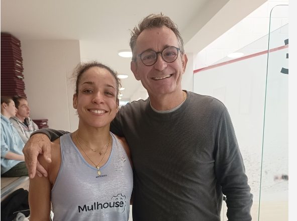 It was quite comfy in the first game for the French – in front of Dad, which doesn’t happen often I tell you – 11/6 in 5m. And it looked about the same in the second, 9/3 in 4m, but out of the blue, Nadine relaxed, found her best squash, and we were 10/6, then, 9/10! Melissa was very releaved to get a stroke as one of Nadine’s shots hit the front corner, coming back in the middle of the court. 7m game.