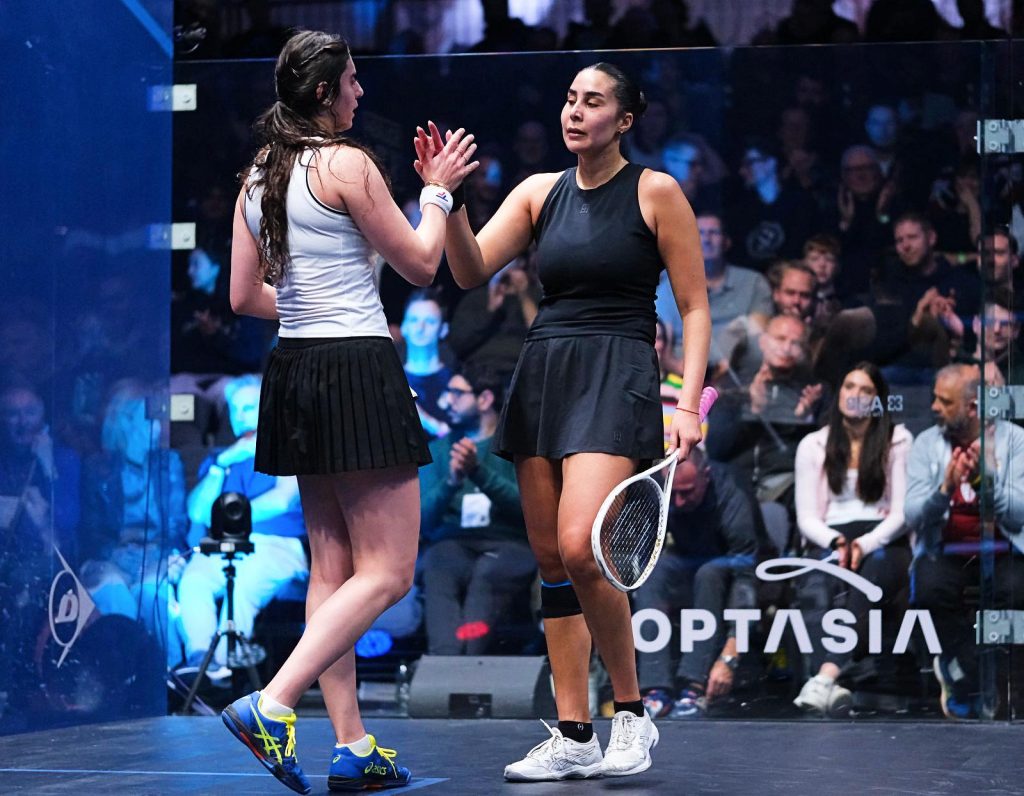 Nour : “It’s a tricky start, Mariam and I grew up together, since we could hold rackets we were together, we know each other’s game and it was tricky, and this court suits her game. She is skilful and likes to hit shots but I’m happy that I could get through in three.